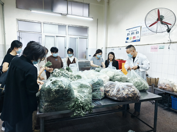 在原材料验收区,同学们围着智能电子秤认真记录:蔬菜一扫码,产地、供应商、质检报告同步上传云端,实现“来源可溯、去向可追”。大家俯身查看蔬菜新鲜度,对比色泽、气味,现场学习“一看二摸三查单”的验收口诀。肉品加工区里,工作人员身穿无菌服,演示分割、清洗、预冷全过程,“动物检疫合格证明、肉品品质检验证”两张蓝纸随货同行,让学生们直呼“放心”。仓库门口,一排非转基因大豆油整齐码放,管理员打开电子台账,展示“先进先出”动态记录,党员们随机抽检批次,结果与系统100%匹配。