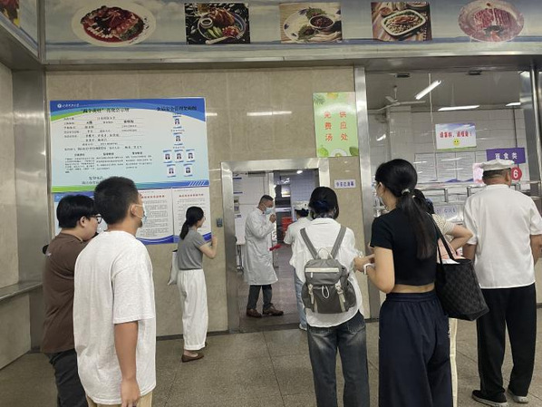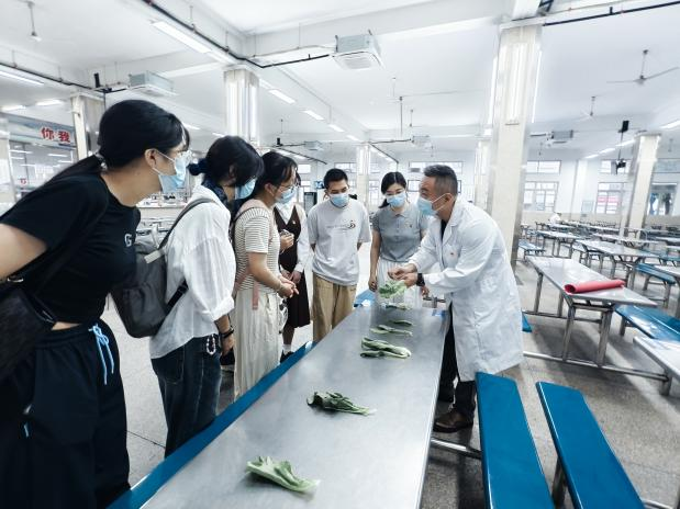 最热闹的要数快检室。食堂检测员取出农药速测卡,滴加生菜样本液,静置10分钟后将试纸对折,短短3分钟,白色药片显色深蓝,“抑制率低于50%,合格!”同学们轮番上阵,独立完成小白菜、油麦菜等5批次快检,结果全部通过。看着手中“合格”标签,食品科学与工程专业25级研究生党员谭怡然感慨:“把课堂实验搬到后厨,让‘安全’二字有了颜色、有了温度。”