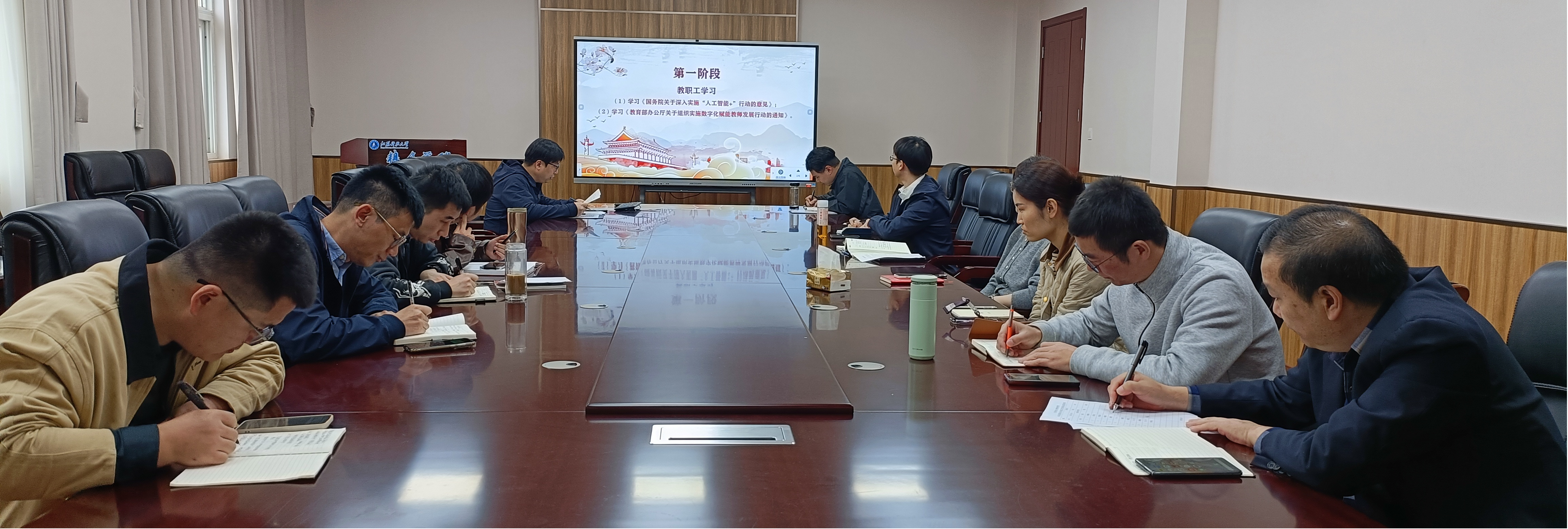 会议第一项,教职工学习阶段,首先关桦楠同志围绕《国务院关于深入实施“人工智能+”行动的意见》与《教育部办公厅关于组织实施数字化赋能教师发展行动的通知》精神,与大家共同探讨人工智能时代教育变革的路径与方向。当前,以大数据、大模型、强算力为支撑的人工智能技术,正以前所未有的力量重塑教育生态,推动教育从传统师生二元结构向“师-机-生”三元模式转型。针对如何提升数字素养,对学科专业内涵更新,加快教学内容迭代,强化人工智能赋能教育教学,关桦楠同志提出了四个方面,包括:筑牢数字素养根基,夯实人工智能赋能教育前提;推动学科内涵更新,加速教学内容智能迭代;强化跨学科牵引,构建协同发展生态体系;创新哲社研究模式,推动人机协同范式转型。