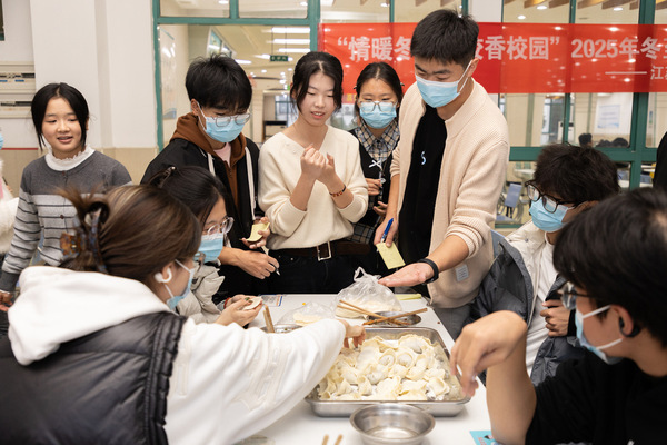 为传承中华优秀传统文化,丰富校园文化生活,搭建师生互动平台,同时为考研学子与家庭经济困难学生送上关怀,12 月 19 日,江苏科技大学粮食学院工会联合金谷义工站,在梦溪校区东苑食堂二楼成功举办 “情暖冬至,饺香校园” 包饺子活动,近 100 名教职工、学生参与线下活动,30 名同学通过线上渠道共享节日喜悦。