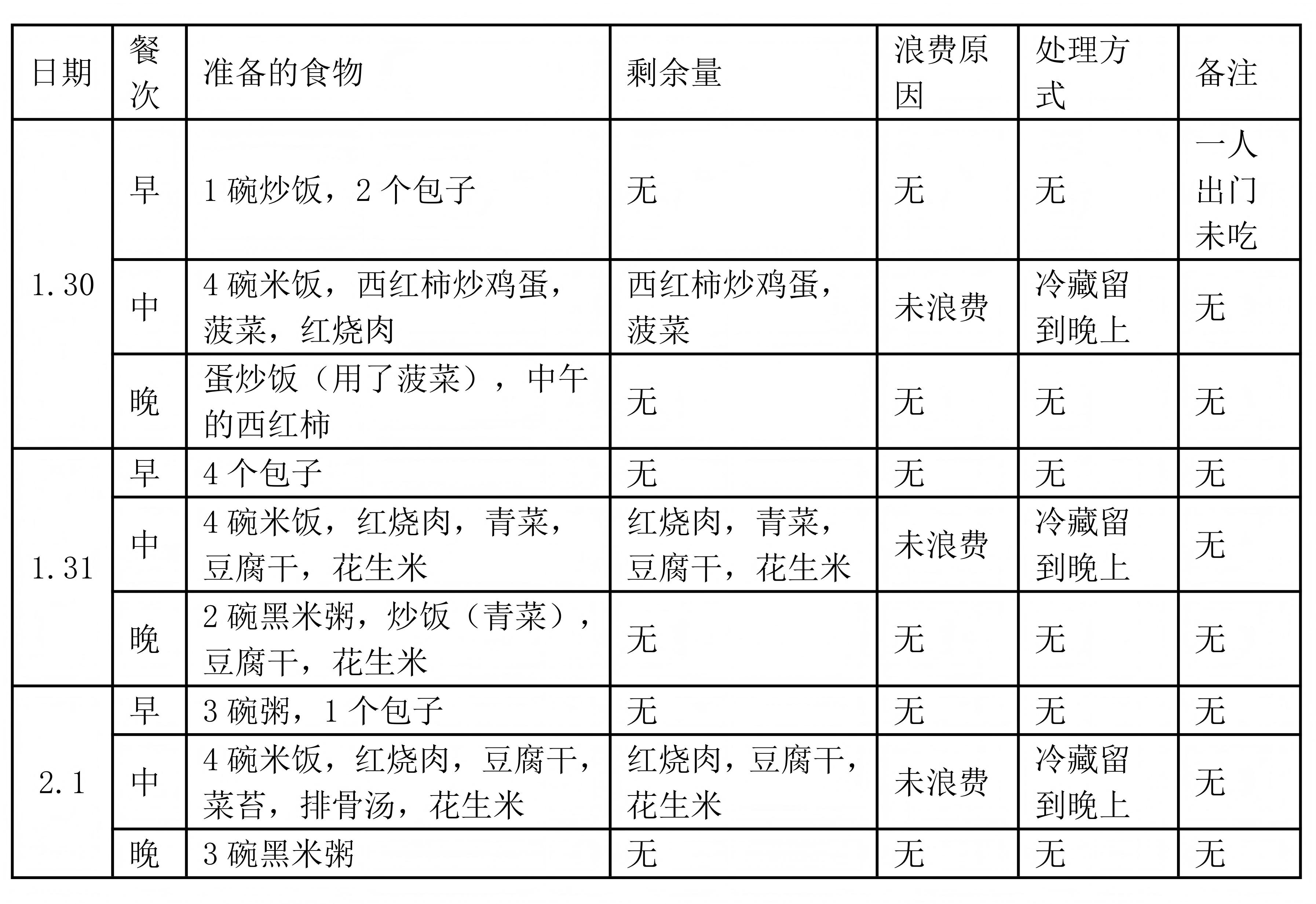 图为成员朱姝洁家庭粮食浪费汇报图