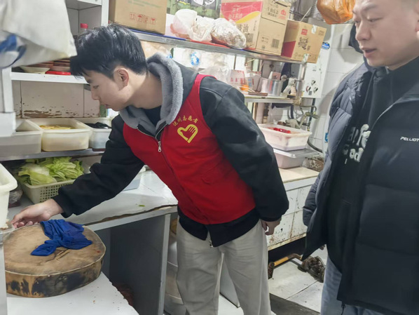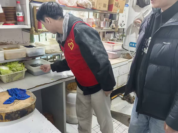 检查过程中,田虹宇认真记录每一家门店的实际情况,对发现的食材摆放杂乱、消毒记录不完整、工具未分类使用等问题,现场向餐饮负责人反馈,耐心讲解食品安全相关要求,协助商家现场整改。同时,主动向经营者和就餐市民普及食品安全知识,提醒商家严格落实主体责任,引导市民关注餐饮卫生,共同守护饮食安全。
