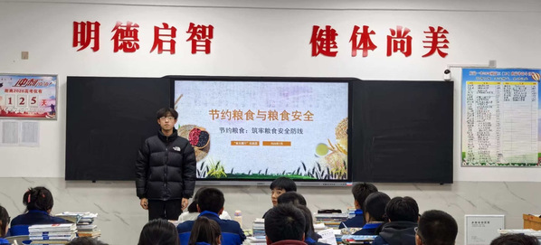 甘肃平凉庄浪一中,成员靳克赟利用班会课、晨会,向同学们讲解粮食安全的重要性,分享节约粮食的小故事,引导同学们树立正确的饮食观念,养成勤俭节约的好习惯。各班还开展了“节约粮食”主题手抄报、征文比赛,同学们用画笔描绘节约之美,用文字诉说节约之心,一幅幅精美的手抄报、一篇篇真挚的征文,展现了新时代少年的责任与担当。他还走进各班教室,开展节约粮食主题宣讲,用生动的案例、有趣的问答,让节约理念深入人心。