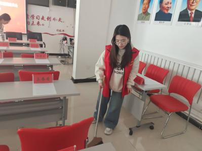 徐庄镇岳庄村党群服务中心内,成员们围绕“党群同心,服务群众”的理念开展工作,面对前来咨询的群众,他们耐心解答疑问,提供清晰指引。此外,成员们还拿起扫帚、拖把等工具,对社区公共区域的杂物、地面进行全面清理,不放过墙角、绿化带等卫生死角,让社区环境焕然一新。