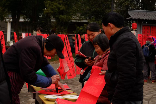 实践的核心,是人与人心灵的联结。在朝阳山老年人活动中心,成员耐心陪伴、倾听长者的故事,用点滴关怀温暖孤独。在青海海东的卓扎沟村与江苏镇江,成员挥毫泼墨义写春联,将传统文化化作新春祝福送入千家万户,在笔墨书香中传递邻里温情。用镜头生动捕捉了乡亲们凝神书写的专注侧影以及红联与烟火气交织的浓浓年味,为这场文化实践留下了珍贵的的视觉记忆。这些温暖的互动,让学子们深刻地体会到,服务的真谛在于用真诚的付出,点亮他人生活中的一抹暖色。
