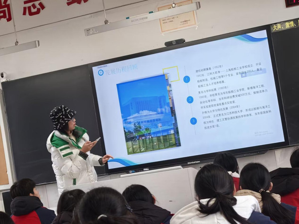 实践团抵达江苏省曲塘高级中学后,首先与班主任进行交流,了解了本届高三学子的学习状态。随后,核心分享活动在高三(3)班开展。宣讲中,粮食工程专业的成员结合专业学习经历,拆解“错题分类整理法”“理科逻辑梳理技巧” 等备考方法,解读 “弱科突破的三阶训练法”。在高校特色分享环节,成员们通过图片展示长山校区 3979 亩校园风光,讲述 “同舟共济” 水上运动中心的龙舟训练故事、船海学院醋文化寻访实践等特色活动,重点介绍学校作为江苏省唯一船舶特色高校的办学优势 —— 从 1933 年建校至今的船舶育人积淀,以及与中国船舶集团共建的实习实践平台。成员们结合校园生活体验逐一解答,现场互动热烈。