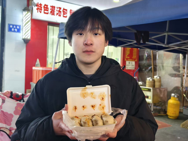 在常州,实践团成员蒋善蕾实地走访当地早餐铺,聚焦常州小笼包开展探访,与商户交流面皮制作、馅料配比等工艺要点,以及这道家常美味成为常州饮食符号的发展历程,读懂了家常美食背后的粮食巧思与日常烟火中的文化传承。