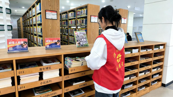 在社区图书室与新时代文明实践站内,周超艺队员化身“小小管理员”,对书架上的图书进行分类、整理、归位与排架。她按照书籍类别、编号顺序逐一整理,将散乱的书籍摆放整齐,并协助工作人员做好图书登记、书架除尘等工作,让原本略显杂乱的图书室变得井然有序,为社区居民营造了更加舒适、便捷的阅读环境。不少前来借阅书籍的居民看到整洁明亮的阅读空间,纷纷对实践队员的认真付出表示赞许。
