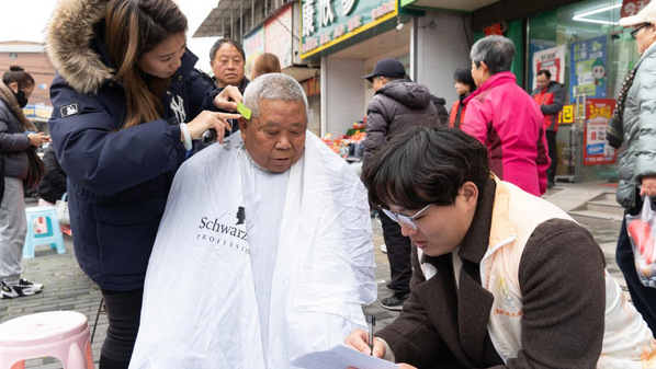 类似的小事,一下午发生了很多次。有的志愿者帮老人把修好的鞋送到手上,有的搀扶行动不便的老人前往理发摊位,有的给等待的居民递上一杯水,有的陪独自前来的老人聊聊天解解闷。大家干劲十足、热情高涨、充分发扬不怕苦、不怕脏、不怕累的精神,齐心协力,默契配合,使社区环境焕然一新,居民纷纷为志愿者点赞。