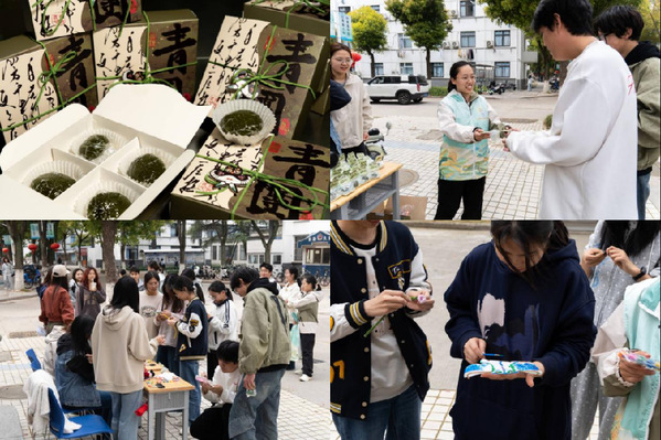 4月1日-2日,手作青团正从学院食品工艺学教室陆续出炉。师生们从采摘艾草、熬煮艾汁,到揉制面团、包裹馅料、上笼蒸制,完整参与青团制作的每一道工序。学院关工委老同志、宿管阿姨、学院教师也一同参与,与同学们揉面、包馅,耐心分享传统面点的制作要领,从艾草的处理到面团的软硬把控,每一个细节都体现着师生之间的手艺传承与情感交流。
