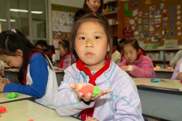 为让科普活动更具趣味性与实践性,本次活动特别设置橡皮泥创意果蔬DIY互动环节。志愿者为孩子们分发彩色橡皮泥,指导大家通过揉、搓、捏、压等方式,制作红薯、紫薯、玉米等各类粮食果蔬造型。孩子们充分发挥想象力,认真创作属于自己的“小小农作物”,并积极上台展示作品、分享创作思路,现场气氛热烈、欢声笑语不断。通过动手实践,孩子们进一步加深对农作物形态特征的认识,真切体会粮食生长的不易,让爱粮节粮的种子在心中生根发芽。