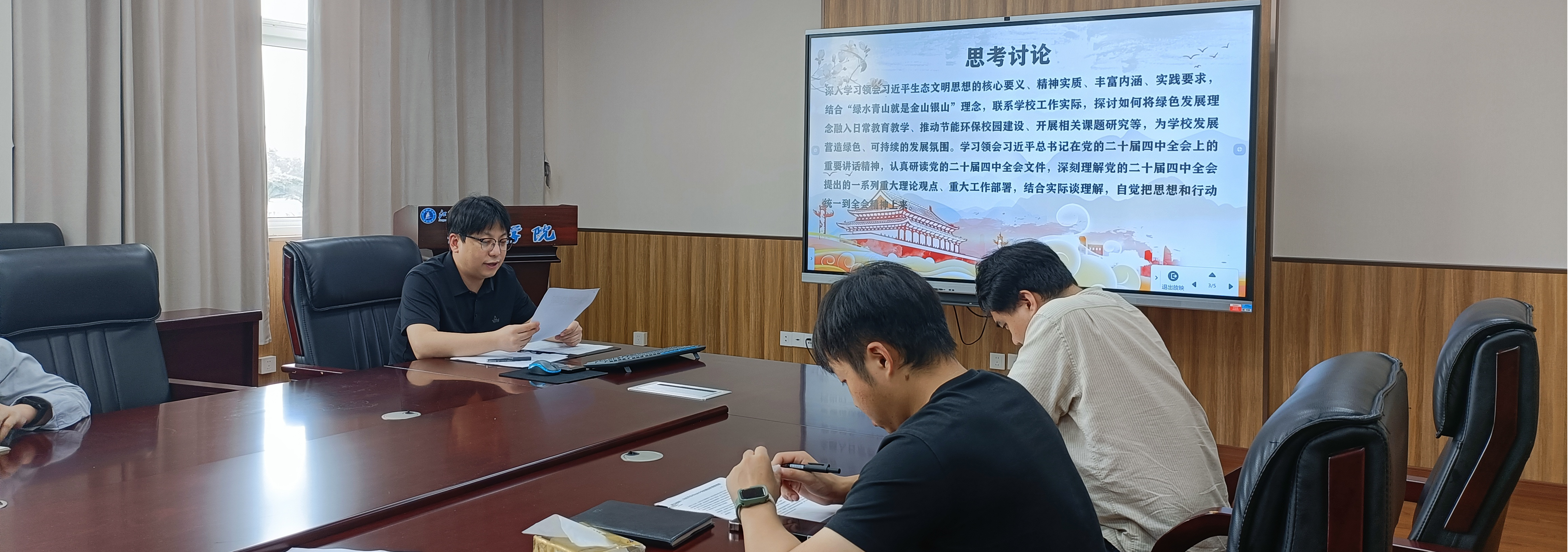 会议第一项,教职工学习阶段,首先由孔德昭同志领学深入学习习近平生态文明思想,深入践行“绿水青山就是金山银山”理念。习近平生态文明思想强调人与自然和谐共生,推动绿色发展。绿水青山就是金山银山,意味着保护生态环境就是保护生产力,改善生态环境就是发展生产力。随后,关桦楠同志围绕“深入学习习近平生态文明思想与党的二十届四中全会精神”,结合学习体会与支部工作实际,从几个方面与大家交流探讨。包括:深学细悟习近平生态文明思想,让绿色发展理念成为支部工作的“思想罗盘”;让绿色行动成为节能环保校园建设的“实践抓手”;将绿色科研作为服务国家战略的“发力点”。并结合支部工作,提出要重点把握三个“自觉统一”,包括:在“完善生态文明领域统筹协调机制”上自觉统一;在“落实重大工作部署”上自觉统一,找准支部服务发展的切入点;在“强化担当作为”上自觉统一,锻造支部攻坚克难的“战斗堡垒”。之后,关桦楠同志询问各位老师近期在教学科研上遇到的问题并记录。